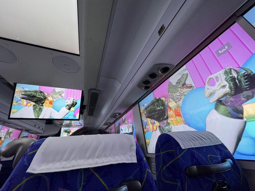 横の窓部分がモニターになっていて、天井部分にもモニターがついています!