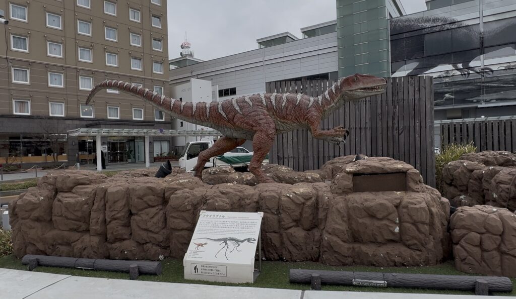 駅前には複数の恐竜ロボットがいます!