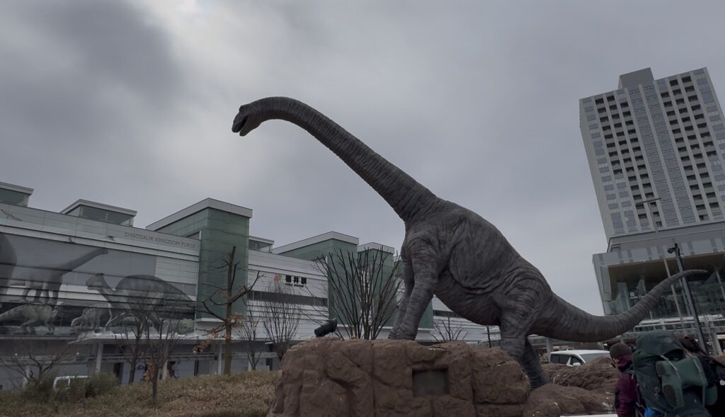 改札を出る前にさっそく恐竜発見!さすが恐竜王国福井!