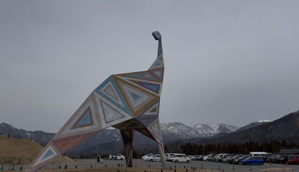 こちらは福井で発見された5種の恐竜と1種の鳥類でつくられた全長約13mのシンボルモニュメント「恐竜の塔」!