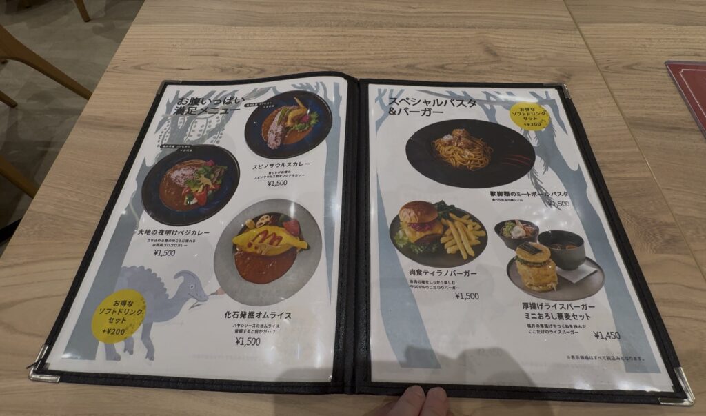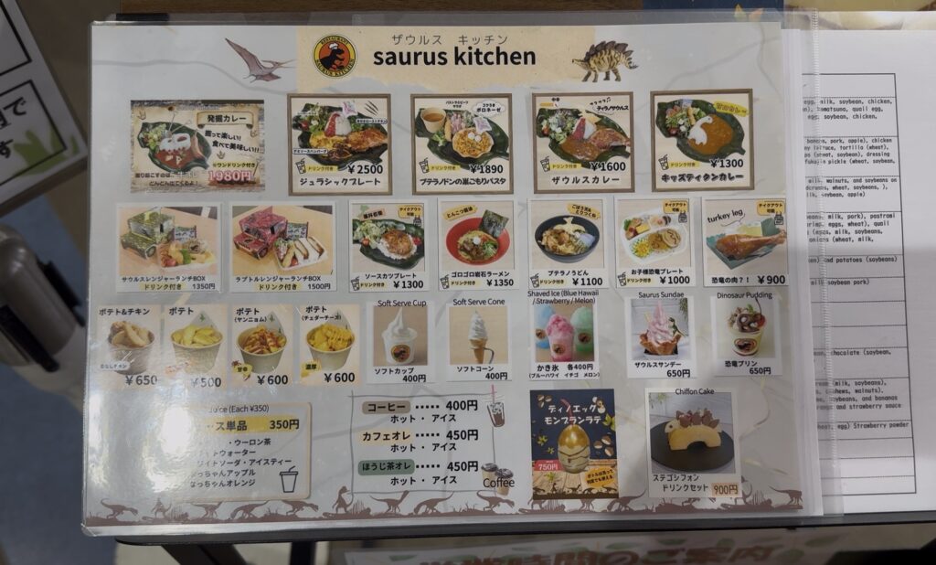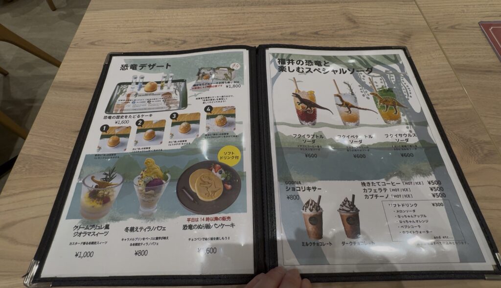 こちらも恐竜モチーフのメニューや福井名物などがあり、時間があれば食べたかったな( ゚д゚)