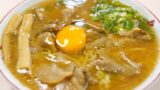 トッピングのお肉は、すき焼きのような味付けで、おだしもそれを使っているからか、結構甘めです!